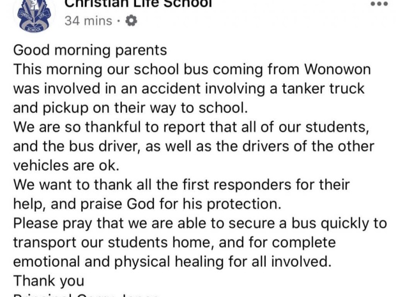 UPDATE as of 10:51 am, Principal Garry Jones of Chrisitan Life School posted to its FB Page that the school bu…