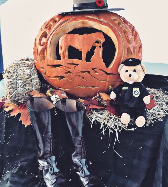 The pumpkin, which was carved into an RCMP theme including an intricate horse design as the focal point, was carved by Hudson’s Hope RCMP Public Servant Employee, Linda Cantlon.