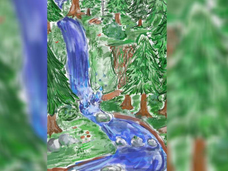 The inspiration for drawing the waterfall comes from a kayaking trip her family took in Hudson’s Hope last summer.