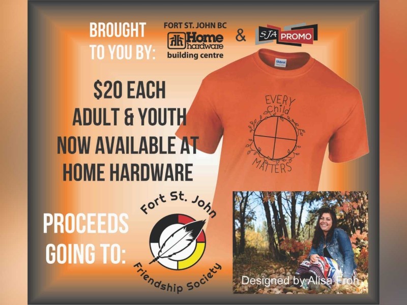 Starting on June 29th at 2 p.m. at Home Hardware, orange shirts can be purchased for $20 with proceeds going to the Fort St. John Friendship Society.
