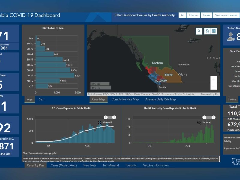 B.C. recorded 2,425 cases over the weekend. From Friday to Saturday there were 695 cases, 634 from Saturday to Sunday, 563 from Sunday to Monday, and 533 from Monday to Tuesday. The active case count for British Columbia is 5,465.