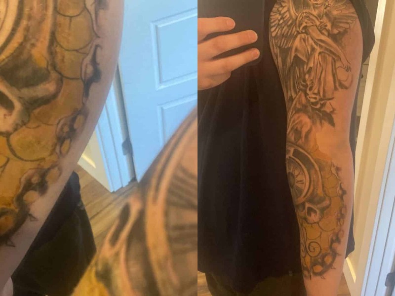 The tattoo was supposed to be a full sleeve and a cover-up.