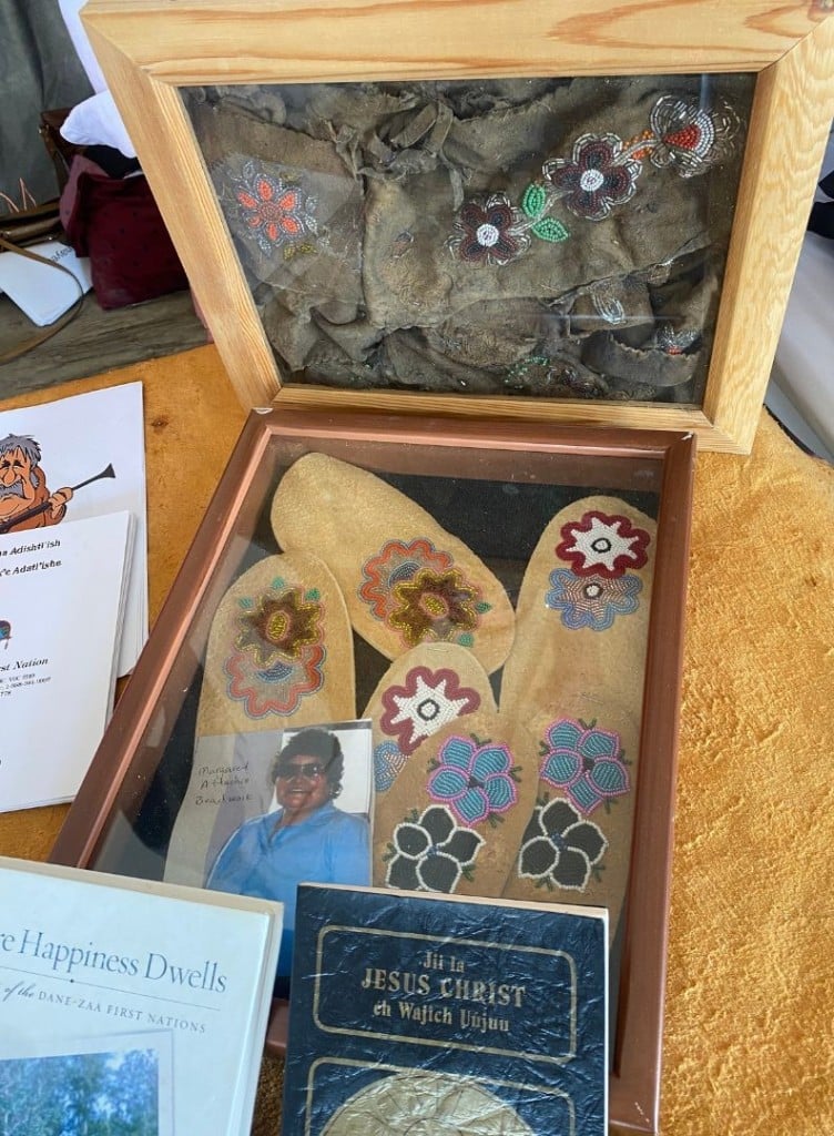 A tent was set up, which included raffle prizes, different types of art from the first nations, and information on Tse’k’wa, Beaver language, the future commons, and the history of DRFN.