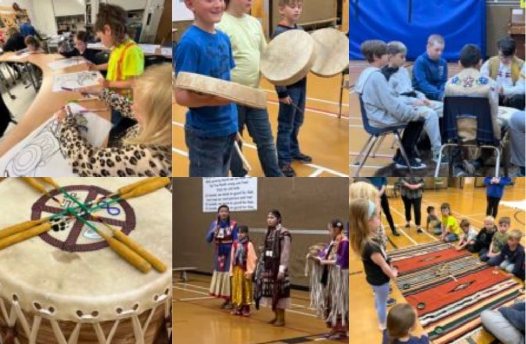 Students played Indigenous games, Diane Barclay came and did a wrap-up lesson about the Grandfather teachings, Bannack Tacos were enjoyed for lunch, dancers and drummers performed, and Dale Boissonneault held a lesson about the Tipi.