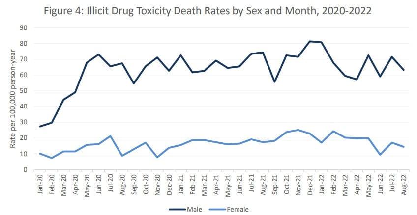 In August 2022, the province reported 169 suspected illicit drug toxicity deaths, a 14 per cent decrease from the number of deaths in August 2021.