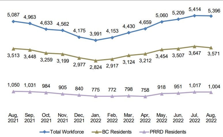 There were 1,004 residents from the Peace River Regional District employed at the dam site, accounting for 22 per cent of the workforce in August.
