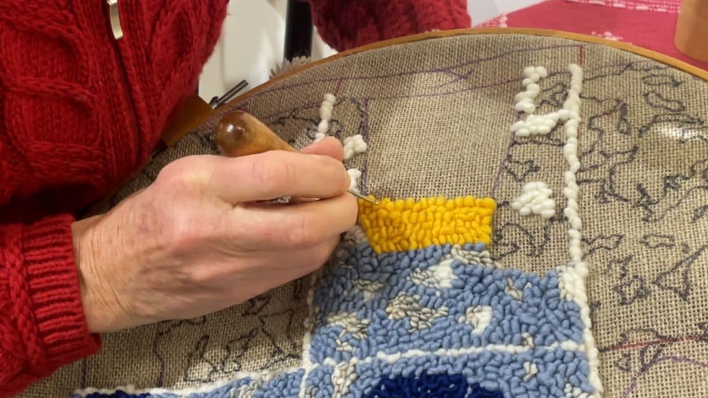 “I like to listen to the radio or music. It is very contemplative, an hour goes by really quickly when I’m sitting here hooking.”