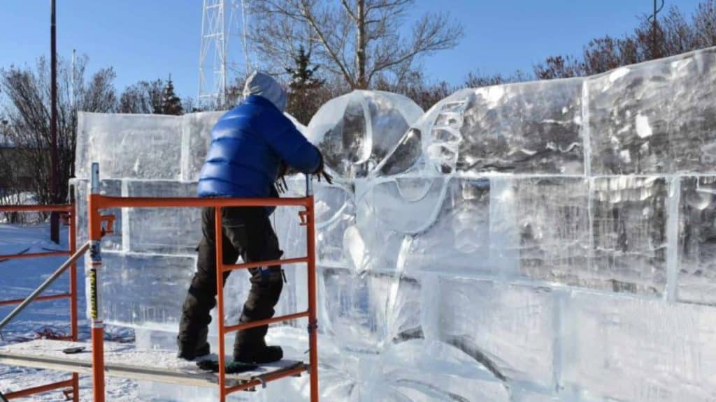 The festival features winter-themed events, including ice slides, ice carving and sleigh rides.