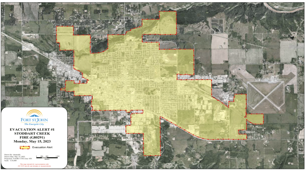 FORT ST. JOHN, B.C. — The City of Fort St. John has placed all properties in Fort St. John on evacuation alert due to the Stoddart Creek wildfire.
