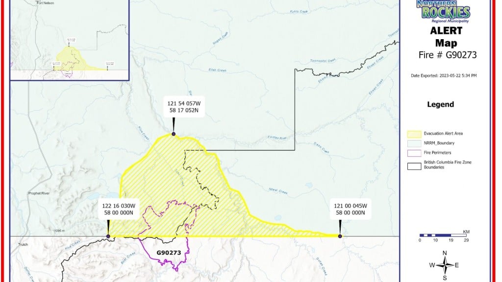 The NRRM says the wildfire is located approximately 35 km east of the community of Prophet River.