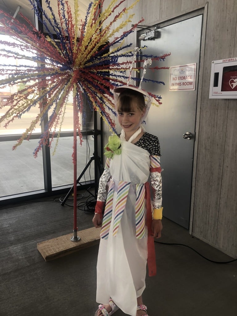 As part of the games, there were table games for a group of attendees to participate in; one involved dressing a volunteer up as an alien using a bag full of miscellaneous items, including ribbon, wrapping paper, tin foil and twist ties.