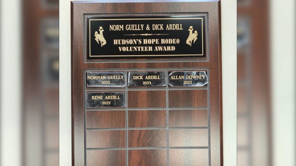 HUDSON’S HOPE, B.C. — The Hudson’s Hope rodeo committee is commemorating the legacies of pioneers Dick Ardill and Norm Guelly with a new volunteer award plaque.