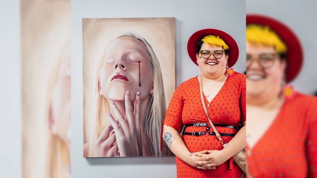 Last year, she was selected to participate in a remote residency culminating in a solo exhibition in September and October with entirely new art pieces. She was mentored by portrait artist Cara Guri while working on the details for the show.