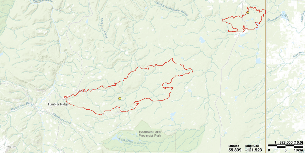 TUMBLER RIDGE, B.C. — The area restriction around wildfires near Tumbler Ridge, known as the South Peace Complex, will be rescinded effective noon on Thursday.