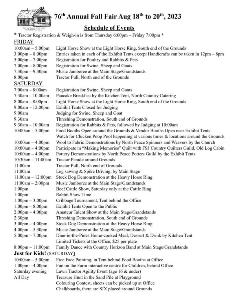 The North Peace Fall Fair is less than three days away, and the schedule is jam-packed with activities for families to take in.