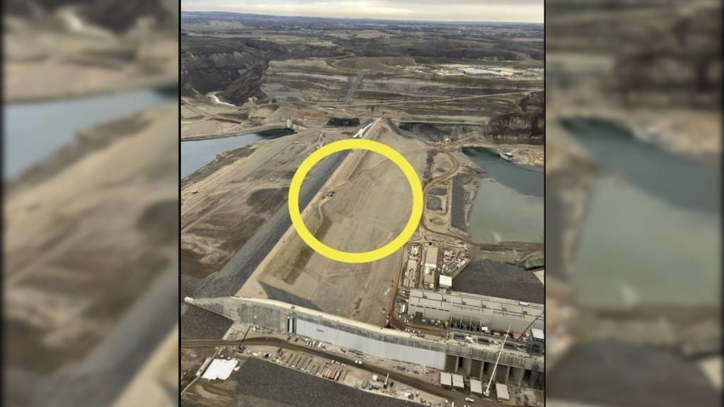 Earlier this week, an X user posted an aerial photo of the earthfill dam, stating there was a “large slide on the dam’s downstream (right) side.”