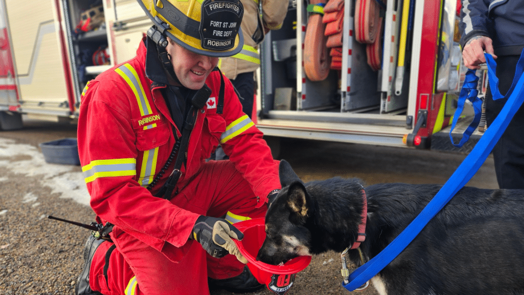 UPDATE: Dog rescued by Fort St. John firefighters after falling down embankment