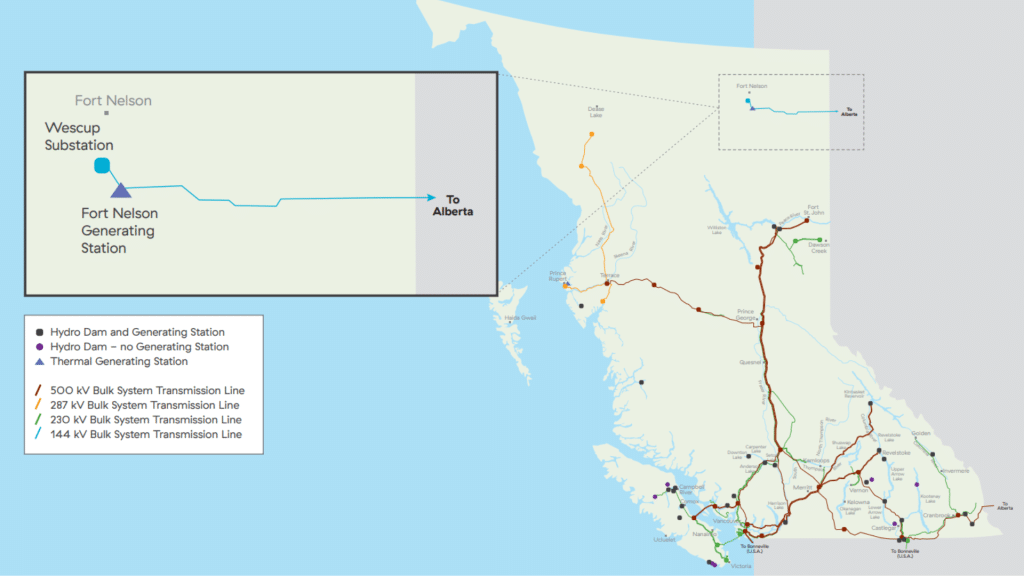BC Hydro says the Fort Nelson region currently has two power sources — the Fort Nelson Generating Station and a long transmission line connecting to Alberta’s electrical system.