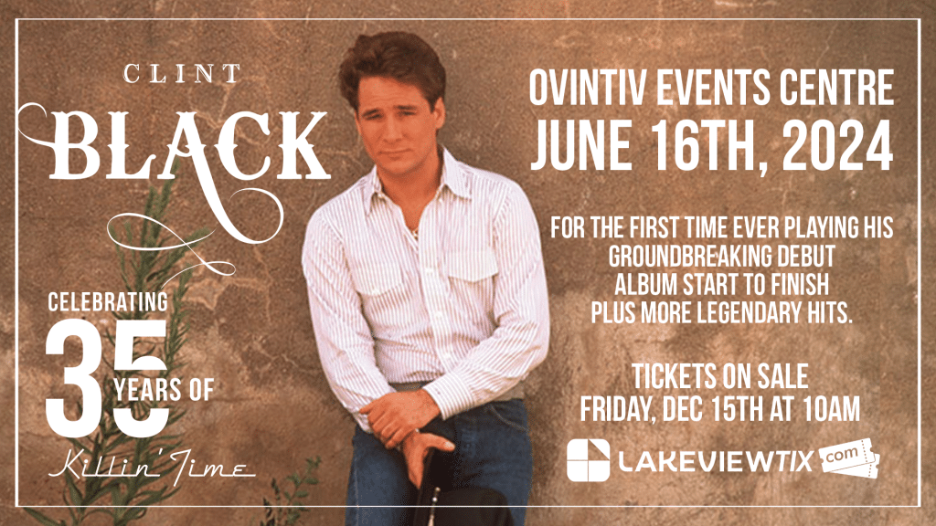 December 11, 2023 – Clint Black announces his 2024 Killin’ Time – The 35th Anniversary World Tour with a stop in Dawson Creek.