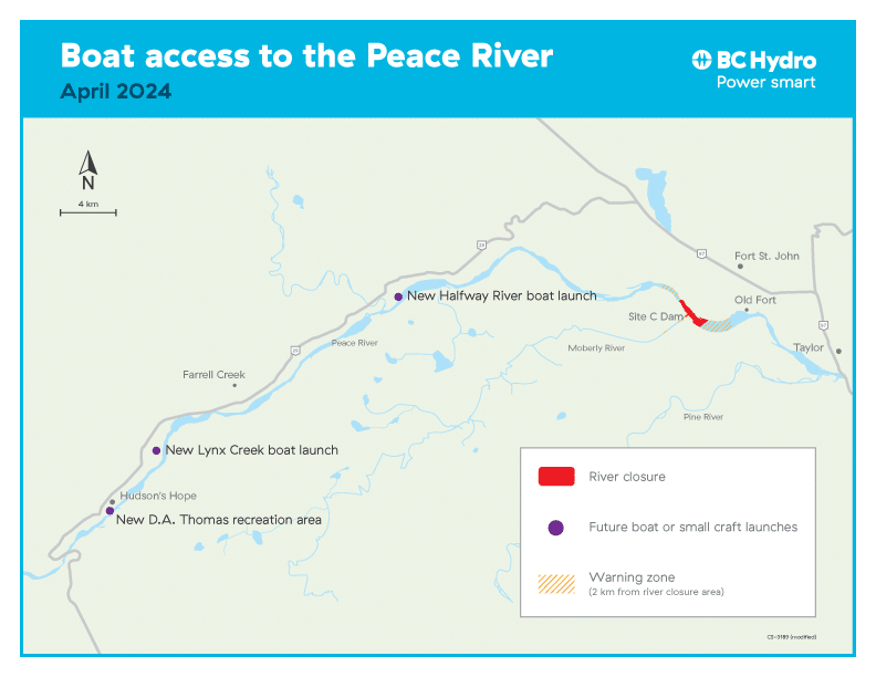 To prepare for filling of the Site C reservoir, which will begin late summer 2024, there will be changes in access to the Peace River.