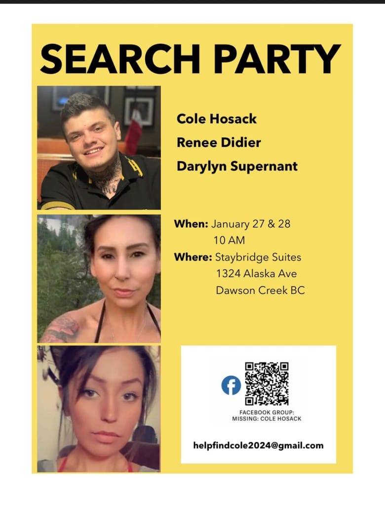 Anyone with information on Darylyn Supernant, Renee Didier, or Cole Hosack’s whereabouts is encouraged to contact the Dawson Creek RCMP detachment at 250-784-3700.