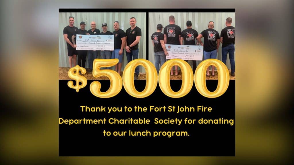 “Thank you to the City of Fort St. John Fire Department Charitable Society for donating $5,000 toward our lunch program,” read a Facebook post from the hall on April 24th.Â