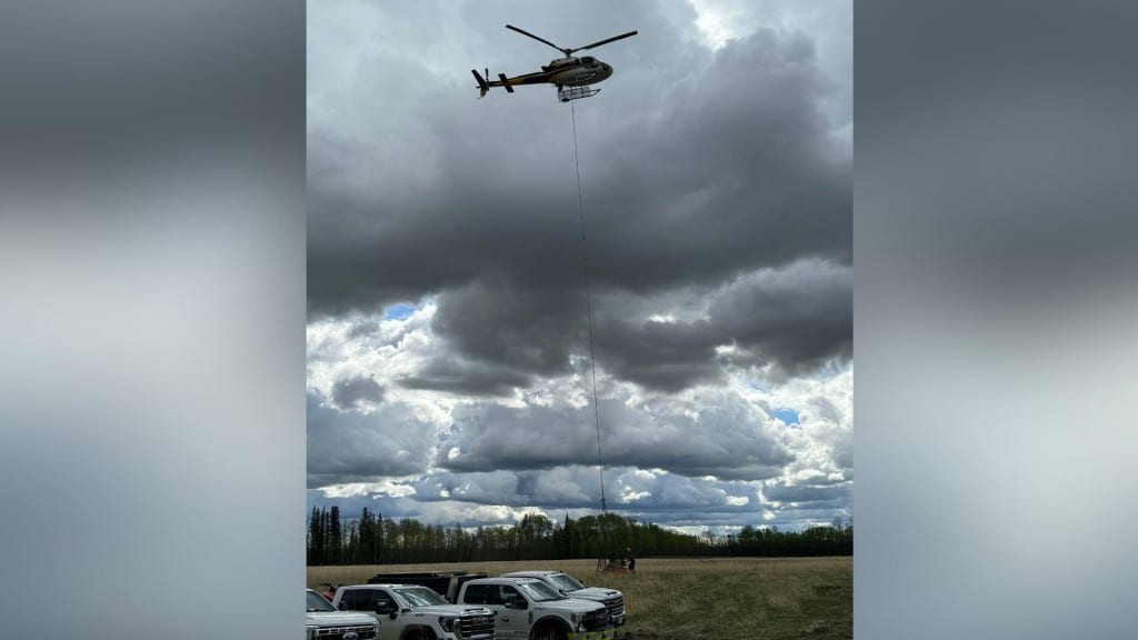 Air support brought water cannons to fight the Doig River Wildfire in May (Doig River First Nation, Facebook)