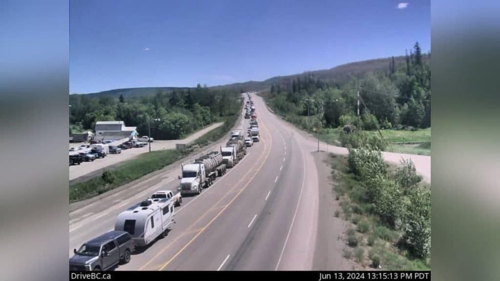DriveBC highwayCams show traffic was stopped in both directions up Highway 97, but has since returned to regular flow.