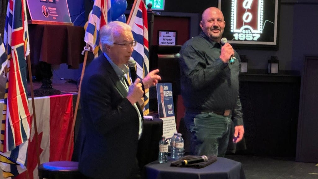 BC Conservative Party leader John Rustad speaking at the Lido in Fort St. John on August 12th. (Energeticcity.ca)
