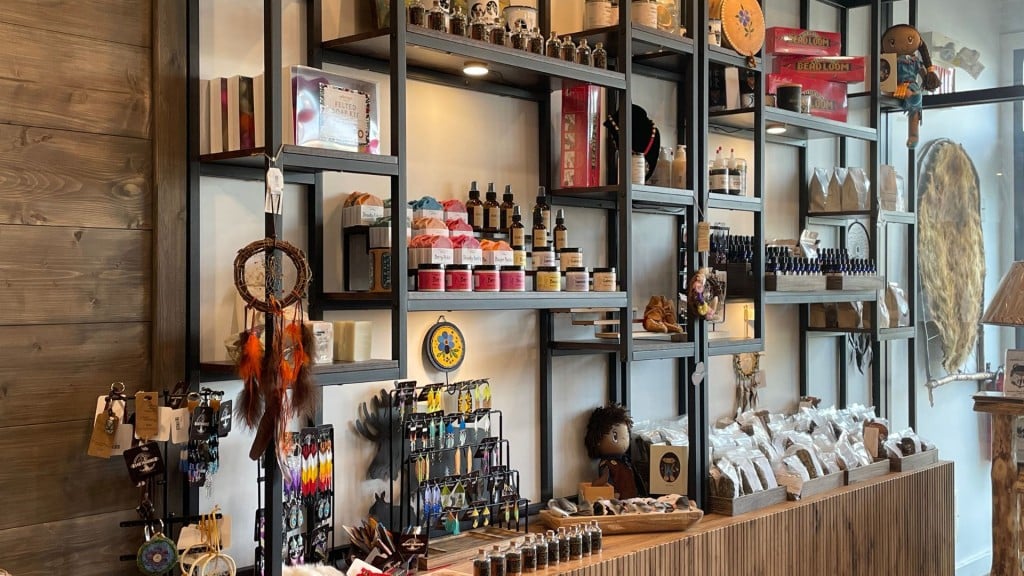 The front space features products ranging from health care and soap to Indigenous-crafted fine jewelry. From moosehide to moccasins, other products also include Indigenous brand coffee.