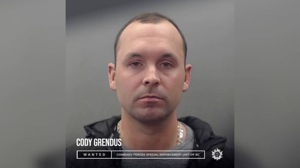 Cody Mackenzie Grendus, a 36-year-old male from Fort St. John. Grendus is wanted on seven counts of trafficking in a controlled substance, one count of possession for the purpose of trafficking, one count of possessing a firearm without a license, one count of careless use or storage of a firearm, and one count of possession of a firearm.