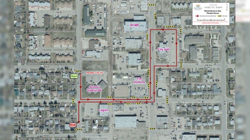 Hosted by the Fort St. John Royal Canadian Legion Branch 102, parade participants will march from the Cenotaph on 102nd Street and 105th Avenue.