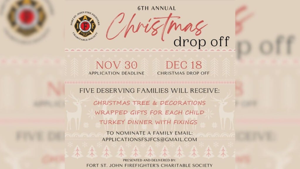 FORT ST. JOHN, B.C. — The Fort St. John Firefighter’s Charitable Society is still accepting nominations for its sixth Annual Christmas Drop Off.