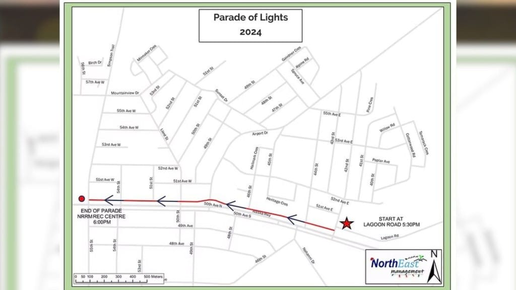 Starting on Sunday, December 1st, at 5:30 p.m., the parade will move through downtown Fort Nelson, starting on 50th Avenue North.