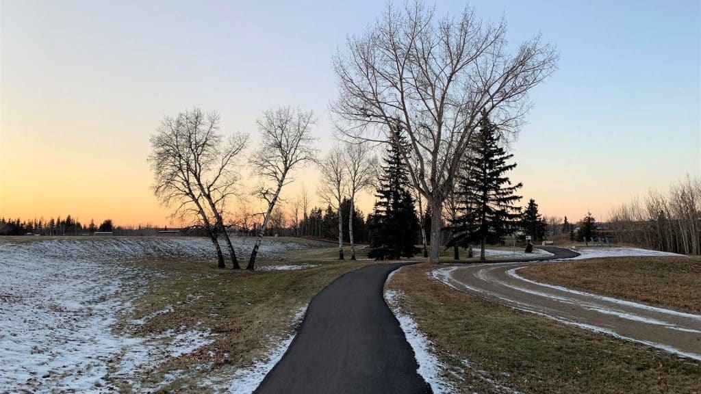 The Dawson Trail, part of the nationwide Trans Canada Trail, runs for 4.5 kilometres in Dawson Creek.