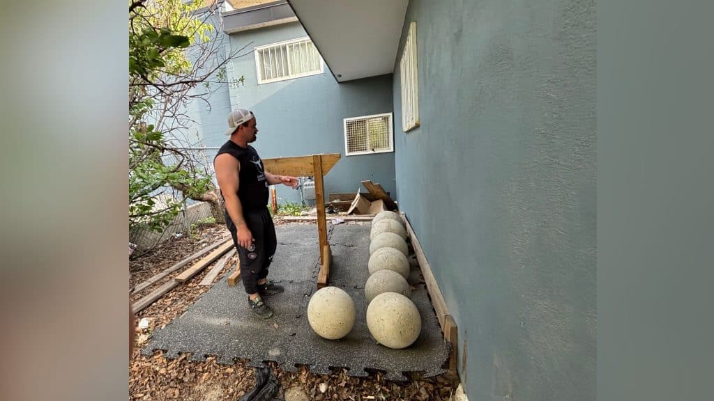 When his sandbags were delivered, he brought them to The Gym. A chance conversation brought Atlas stones into his ownership as well.