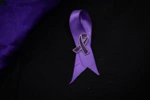 Celeta Cook, First Nations Health Authority Executive Director of Public Health Response wears a purple ribbon for overdose awareness during a news conference in North Vancouver, on Monday, April 14, 2025. THE CANADIAN PRESS/Ethan Cairns