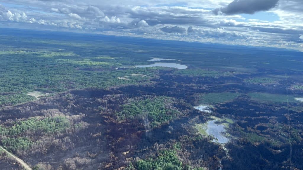 An aerial shot of the damage caused by the Kiskatinaw River wildfire (BC Wildfire Service)