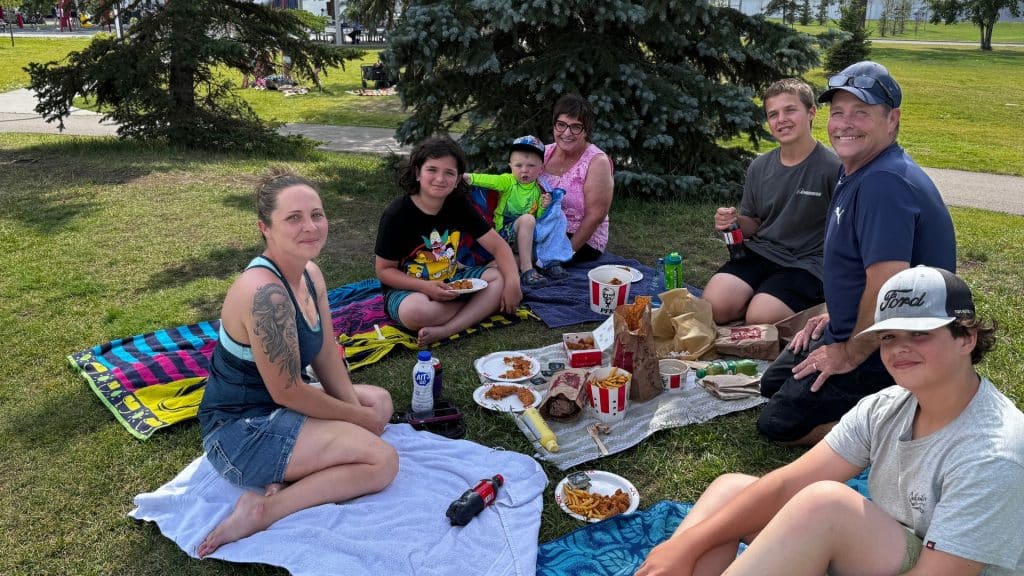 Dale Bigelow was enjoying the shade, having some Kentucky Fried Chicken (KFC) with his daughter and grandchildren.