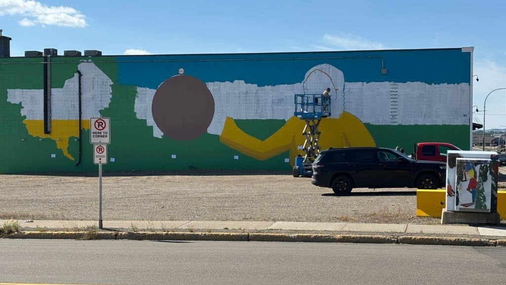 FORT ST. JOHN, B.C. — An Indigenous artist is inching closer to completing the Treaty 8 mural project against the backdrop of a prominent office building in town.