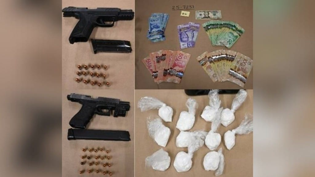 Guns, money and drugs reportedly seized by police. (Fort St. John RCMP)