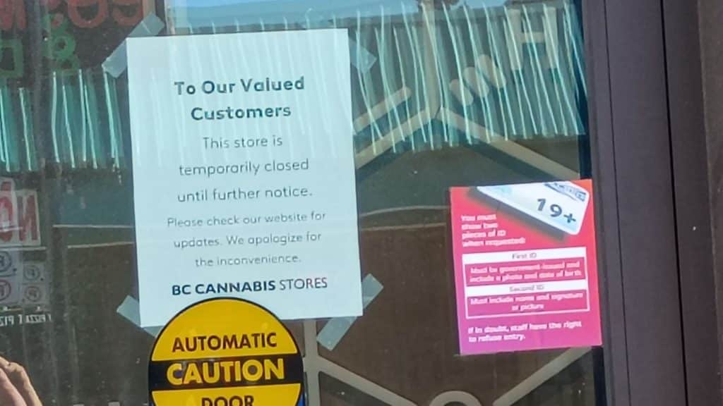 The liquor and cannabis storefront situated in Fort St. John’s downtown core at 10211 100th Street was shuttered, with employees having strung rope and wearing signs.