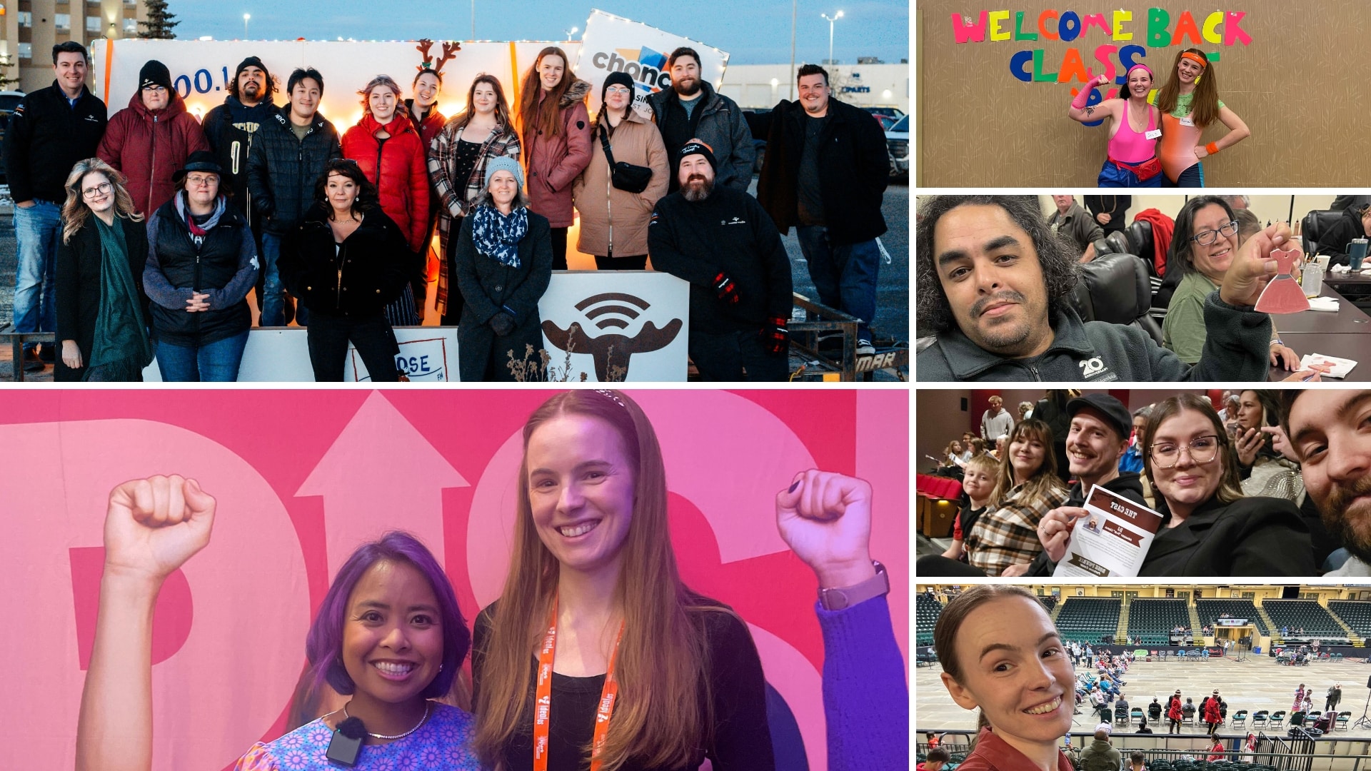 Light A Moose 2025 (top left), Spark Women’s Leadership Conference (bottom left), Chances Casino Murder Mystery Night (top right), MMIWG2S Vigil (middle right), Peace Country Harvest (middle right), Gathering of Nations (bottom right)
