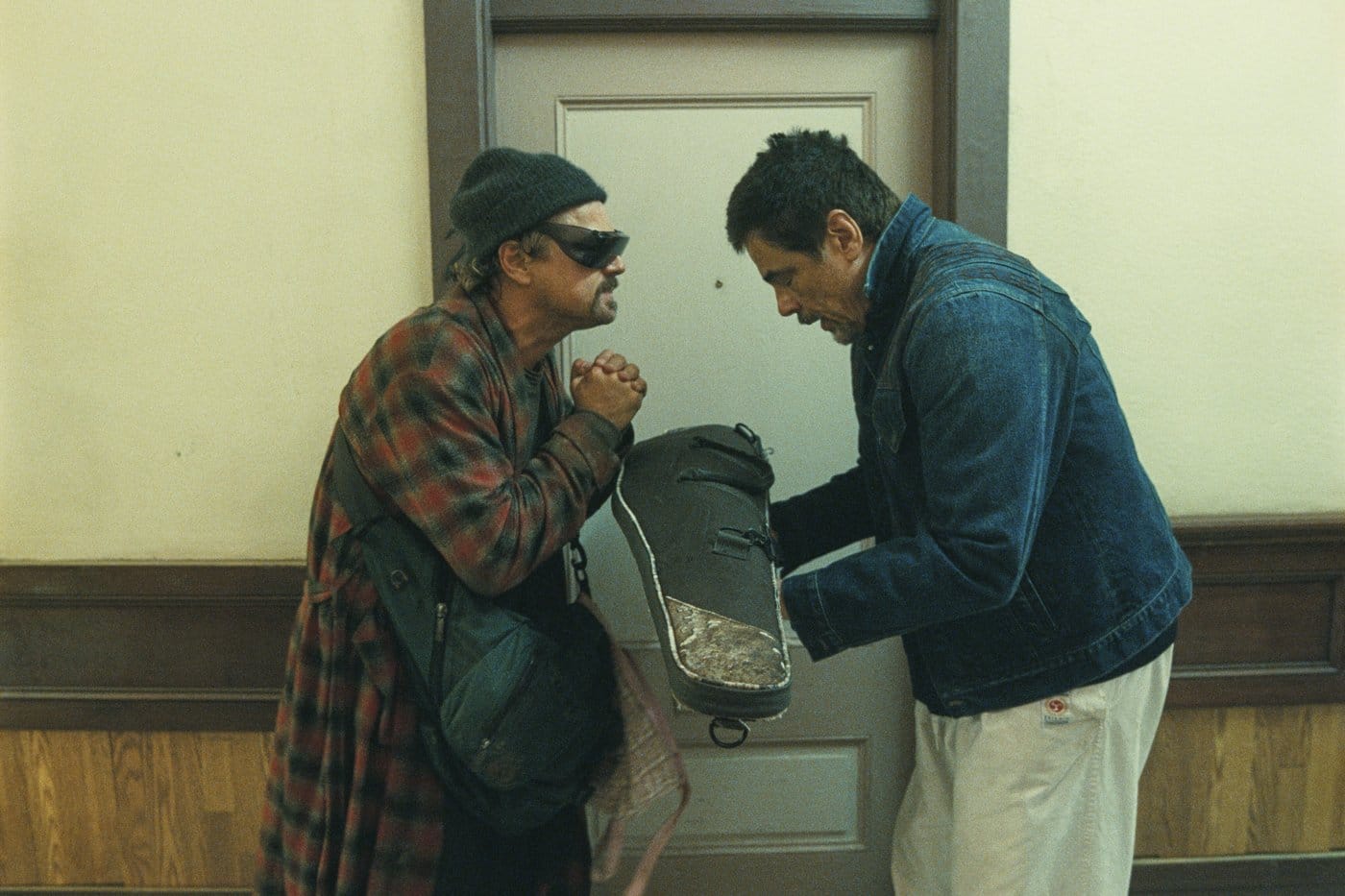This image released by Warner Bros. Pictures shows Leonardo DiCaprio, left, and Benicio Del Toro in a scene from “One Battle After Another.” (Warner Bros. Pictures via AP)