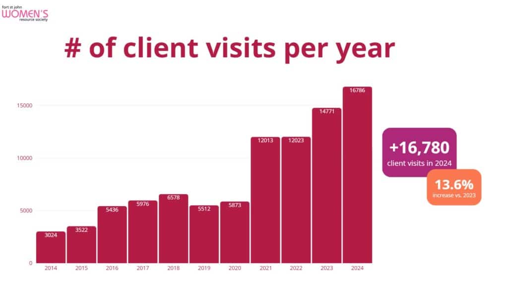 Visits to Fort St. John Women’s Resource Society Outreach Store increased by 13 per cent in 2024, with numbers for 2025 expected to rise again.