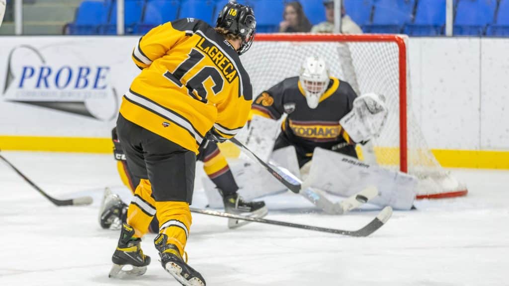 The final score was a 7-1 victory on Sunday, December 21st. Huskies goaltender Evan Baker made 20 stops in the win, coming just 13 minutes shy of a shutout, with the only blemish being a score from Kodiaks forward Easton Mooy in the third period.