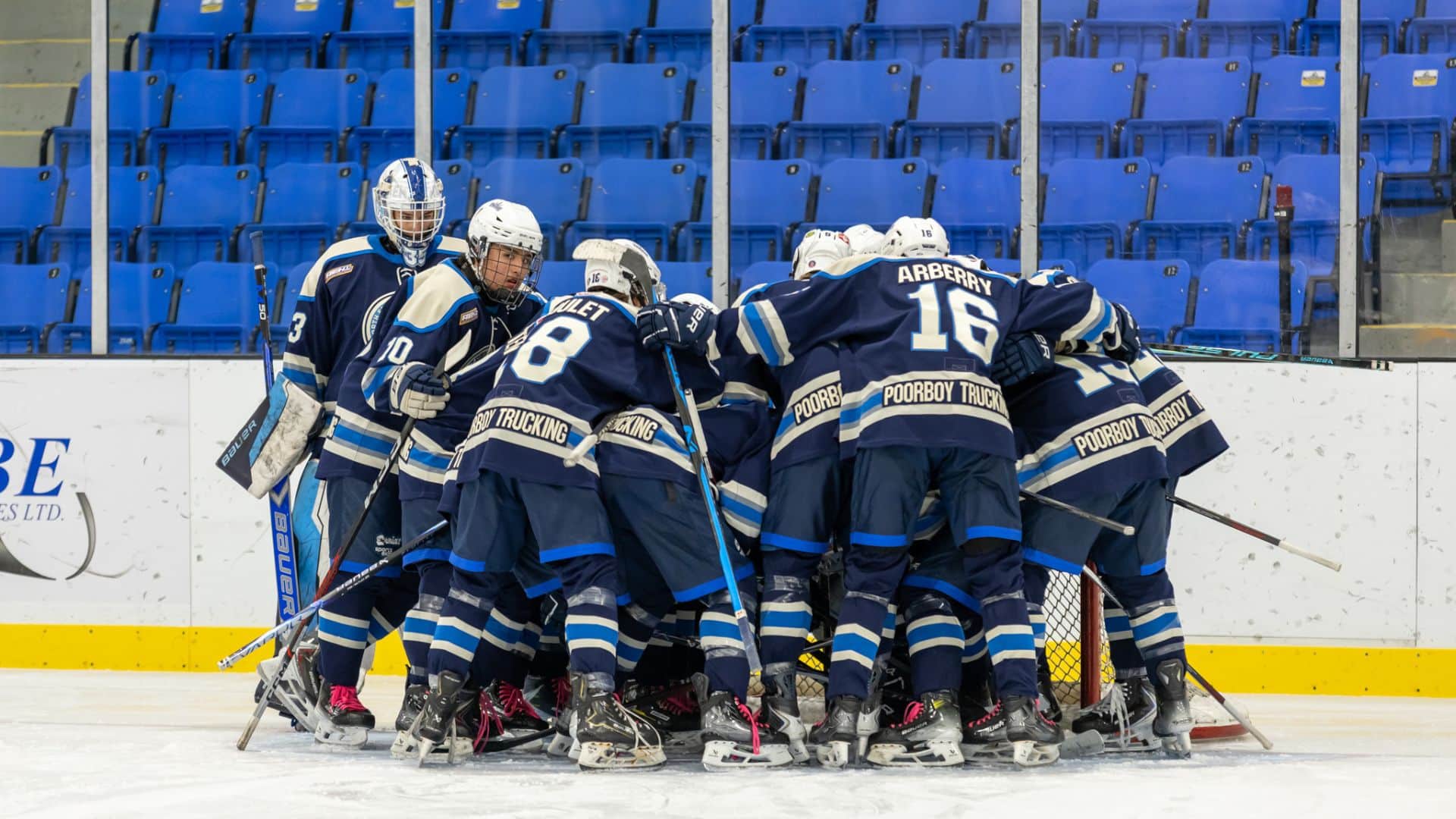 Here celebrating a goal earlier this season, the North East BC U-18 Trackers will host the provincial championship in Fort St. John (Street Legal Photography, Facebook)