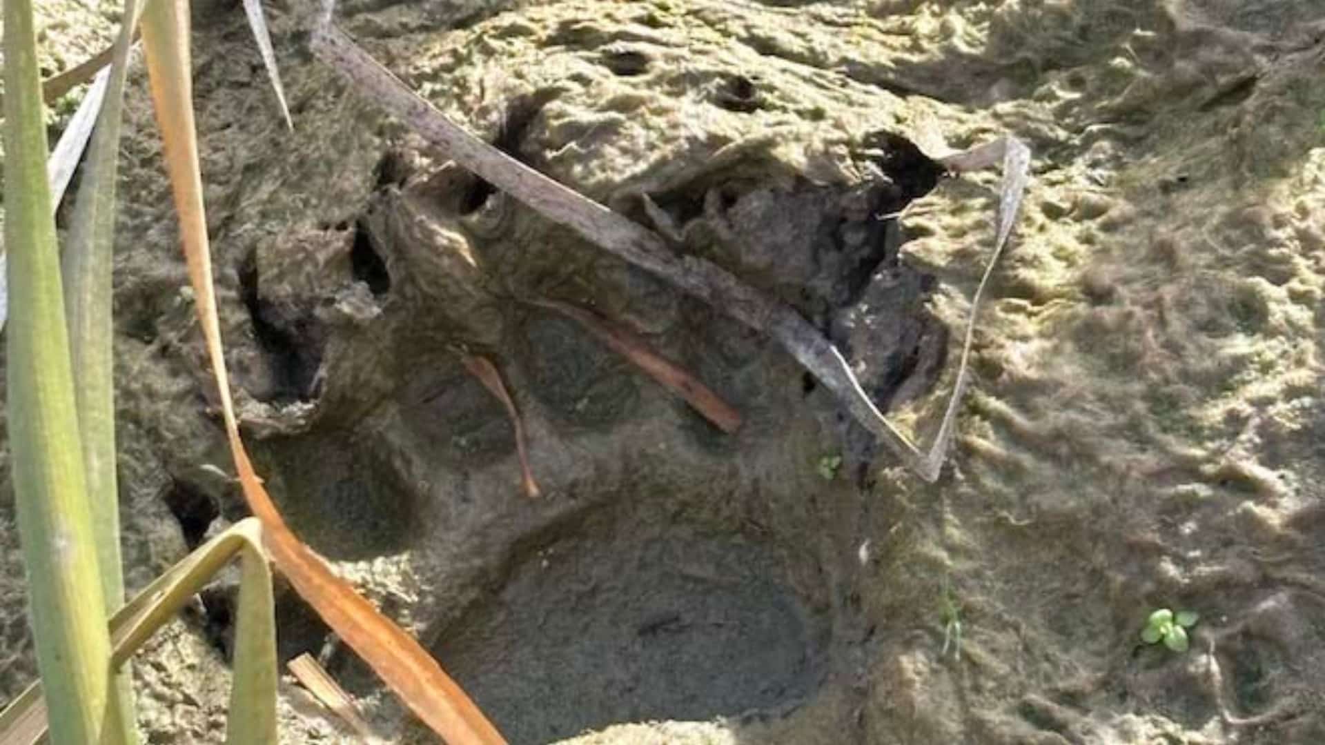 A bear’s paw print seen in the mud in a wetland, previously a Site C construction area. (BC Hydro)