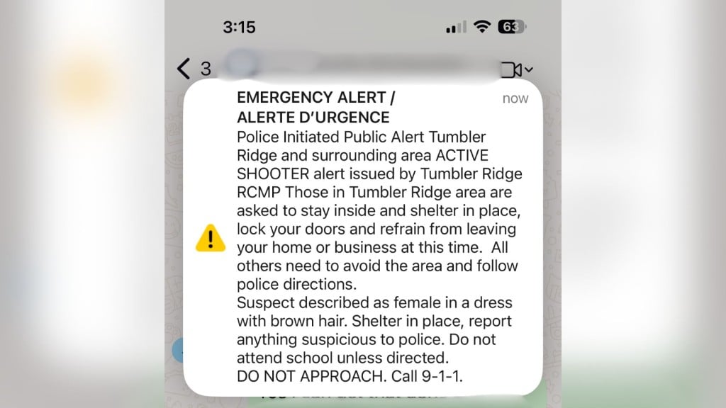 A public alert has been issued for an ‘active shooter’ in Tumbler Ridge.