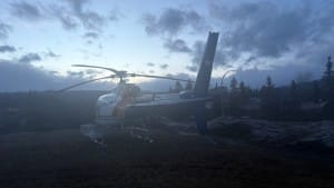 An RCMP helicopter landing in Tumbler Ridge amid the ‘active shooter’ incident on February 10th. (Submitted)